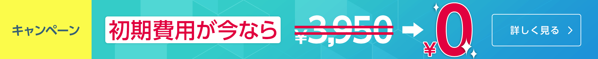 新規申し込みで、通常3,950円の初期費用が無料となるキャンペーンです。