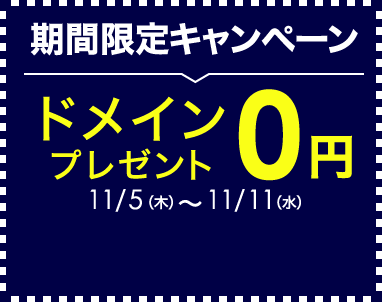 キャンペーン期間中に1年間契約をしたユーザーを対象にドメイン(初年度のみ)が無料となります。複数の契約にも適用されます。com/net/info/biz/orgから選べます。