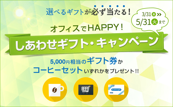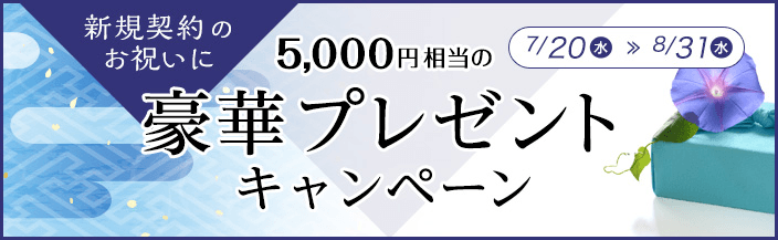 新規契約者を対象にもれなく、1.コーヒーギフト詰め合わせ、2.Amazonギフト券、3.Visaプリペイドカード、それぞれ5,000円分から選べます。