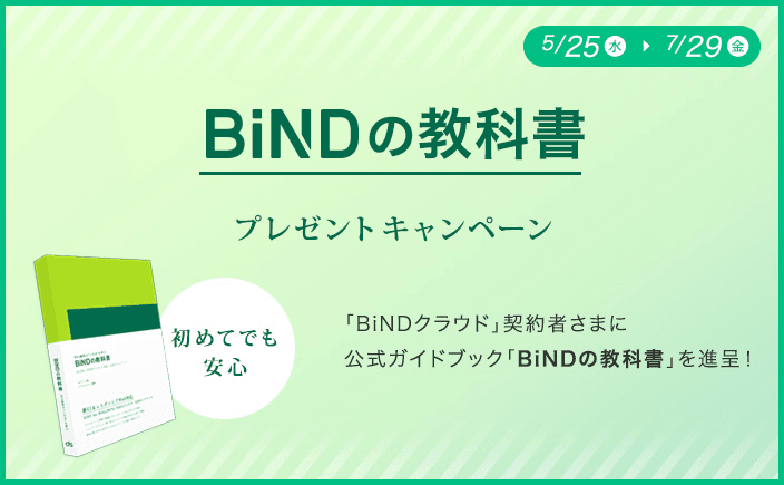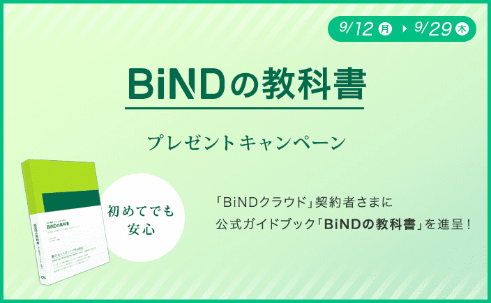 キャンペーン期間中にiCLUSTA+のオプション「BiNDクラウド」を契約すると、「BiNDの教科書」(定価2,200円)を郵送でお届けします。