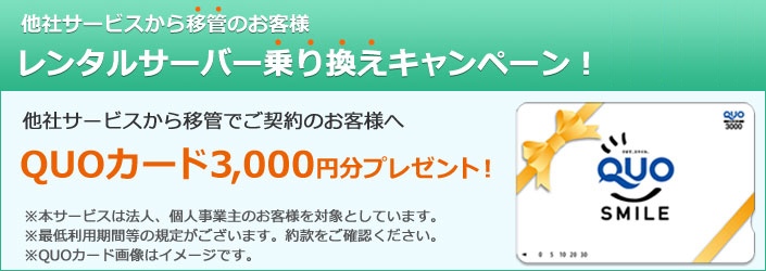 他社サービスから乗り換え(ドメイン移管)でQUOカード3,000円分プレゼント。法人、個人事業主が対象です。