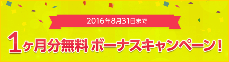 全てのプランを対象に3ヶ月以上の契約で、3ヶ月分の無料契約期間が付与されます。つまり、3ヶ月分の料金で6ヶ月間利用できます。