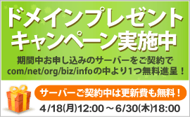 キャンペーン期間中にサーバーアカウントを契約すると、好みの独自ドメインを無料で取得できます。また、エックスサーバーの契約期間中はドメインの更新費用もずっと無料です。