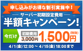 初期費用無料、さらに、2ヶ月分の利用金が無料です。ただし、ねん割りプランは対象外です。他にも、ドメイン料金がキャンペーン価格、SSL対応オプションが無料となっています。