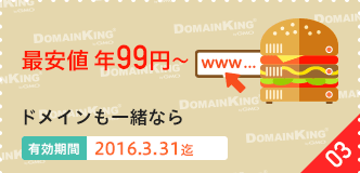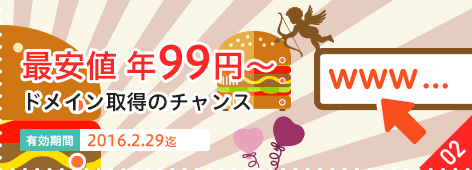 期間中に1年間の新規契約で好きなドメインの取得料金が無料となります。ドメインは、com/net/info/biz/orgから選べます。