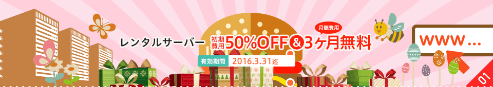 全プランの初期費用が半額となります。さらに3ヶ月以上の契約で、利用期間が無料で3ヶ月分延長されます。