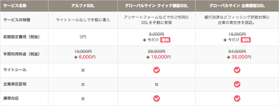 独自SSL対応に必要な独自IPアドレスがキャンペーン価格となっています。CORE-A/411円、CORE-B/308円、CORE-C/206円。