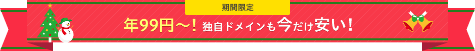 契約時の初期費用(3,950円分)が無料になるキャンペーンです。さらに、ドメインの取得料金が無料となります。取得可能なドメインは.com/.net/.info/.xyzです。