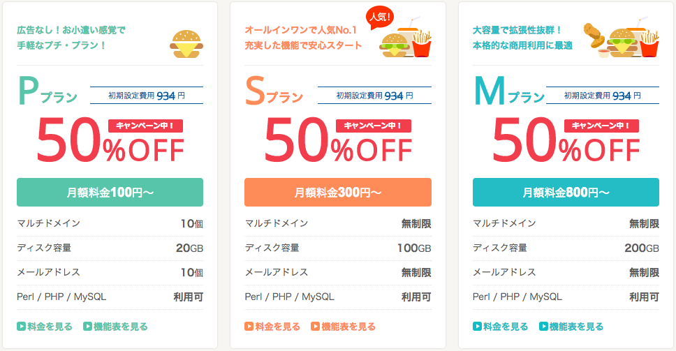 キャンペーン期間中に、新規契約すると独自ドメインを無料で取得できます。.com/.net/.org/.biz/.infoから自由に選択でき、サーバーの契約期間中は更新費用も無料です。