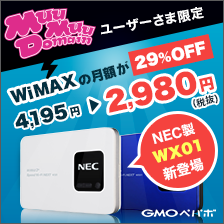キャンペーン期間中にPEPABO WiMAXを契約すると通常月額4,195円のところ、特別価格月額2,980円で契約することができます!毎月1,215円もお得になります。