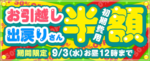他社サービスからのお引越しの方・出戻りの方を対象に期間内のお申込みで初期費用 1,500円(税抜)が半額の 750円(税抜)に!