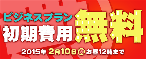 通常 3,000円(税抜)のビジネスプランの初期費用が無料となる大変お得なキャンペーン! 期間限定のこのチャンスをどうぞお見逃しなく!