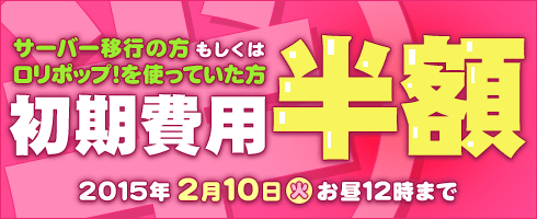 他社サービスからのサーバー移行の方、以前にロリポップ!をご利用いただいていた方を対象とした初期費用半額キャンペーンを開催しております。