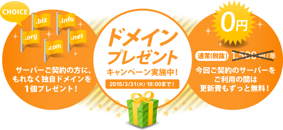 期間中にサーバーアカウントをご契約していただくと、サーバー初期設定費用が半額!税抜5,000円 → 税抜2,500円(50%オフ!)